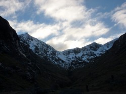 Friday night, and five YMC members rendezvoused at the Crianlarich Youth Hostel after the long drive north. It was the first time I had stayed in Crianlarich itself, and my comment that I had been informed (reliably, or so I thought) that there were “good pubs” in the village prompted much hilarity from those who had stayed there before. A visit to the nearest drinking house for a swift pint followed - suffice to say that I had clearly been misinformed!