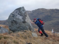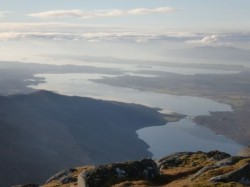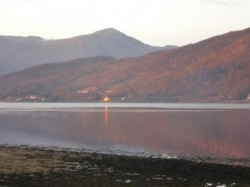 In the belief that this was a target for Units of Alcohol, the team made its way back over the humps and happily along to the Ballachulish Hotel, pausing only to replace a huge boulder which had fallen over. The evening sun turned the slopes above Onich and Loch Linnhe into a golden glow, as we set to work on our internal glows from satisfaction and uisge beatha.