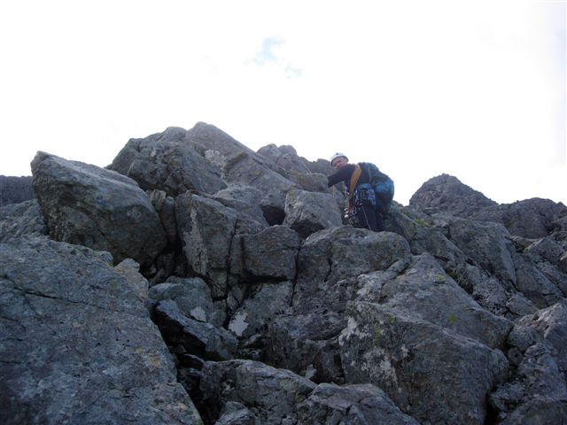 way up the steep, rocky, loose scramble to the ridge proper. It was
