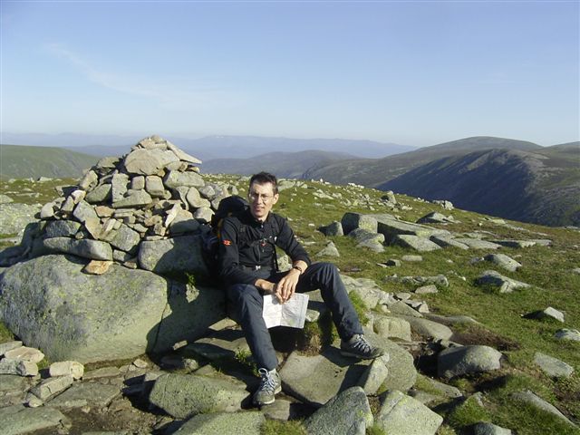 probably cost us hill number 16 on day one. On the Saturday morning we set off from Lochnagar at 5.06, hit Glen Shee at 14.26 and Munro 15 at 20.03, almost exactly 15 hours later. Settling in for the night a little after 21.00. |