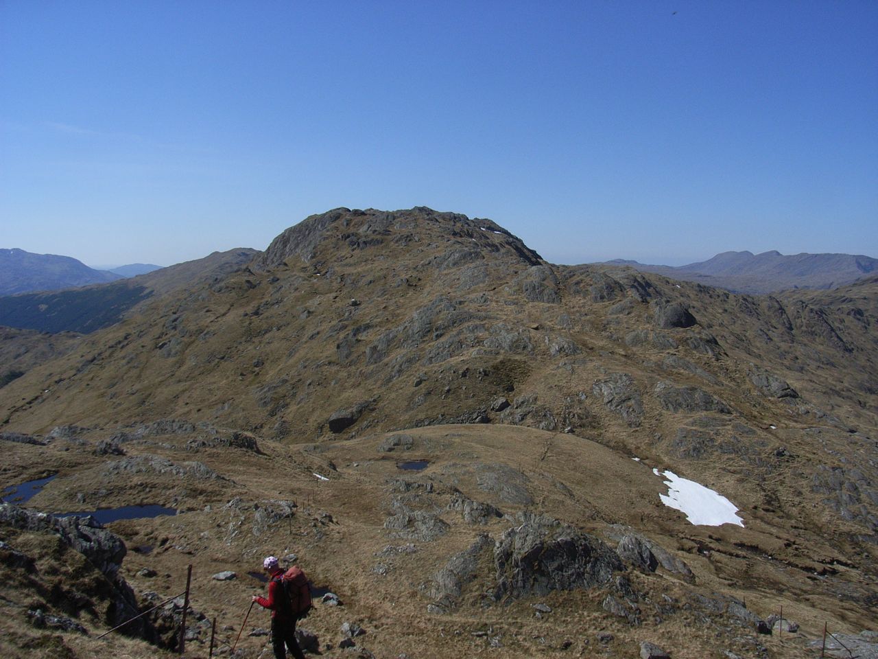 This gave an excellent warm-up, and the view west showed that the mountains of Ardgour were pretty much clear of snow, notwithstanding the cornices surviving in the Glen and on the Ben.