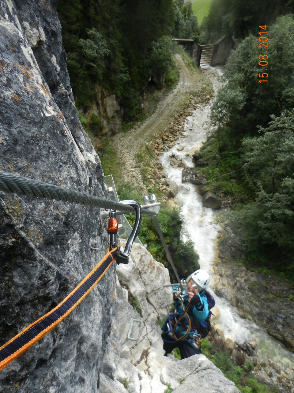Our second day was also showery weather, and we drove to the Zillertal where the Riederklamm gorge is only 10 minutes walk from the road. Here the gorge walls have been provided with a "sporty" klettersteig route, which got quite atmospheric at times high above the noisy stream.