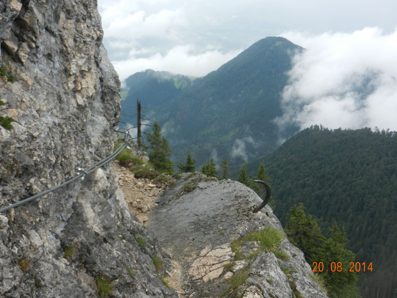 At first, on a day of low cloud with rain forecast, there was nothing better to do than go up the local mountain behind Soll -- the village where we'd landed. The Grosser Polvern provided a 5.5 hour ridge walk (in trees at 1500 metres) which ended with a steep protected path down a 120-metre cliff.