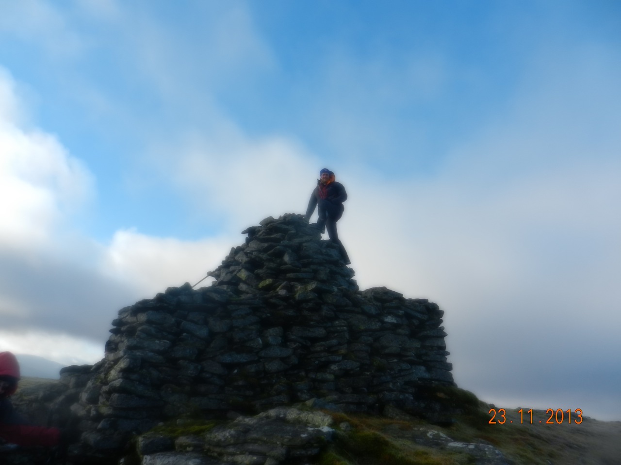 The 911-metre summit has a particularly large cairn, and as this is possibly 3.4 metres high, it became apparent that Ben Carrier ought to be added to Munro's List. Hmmmm !!