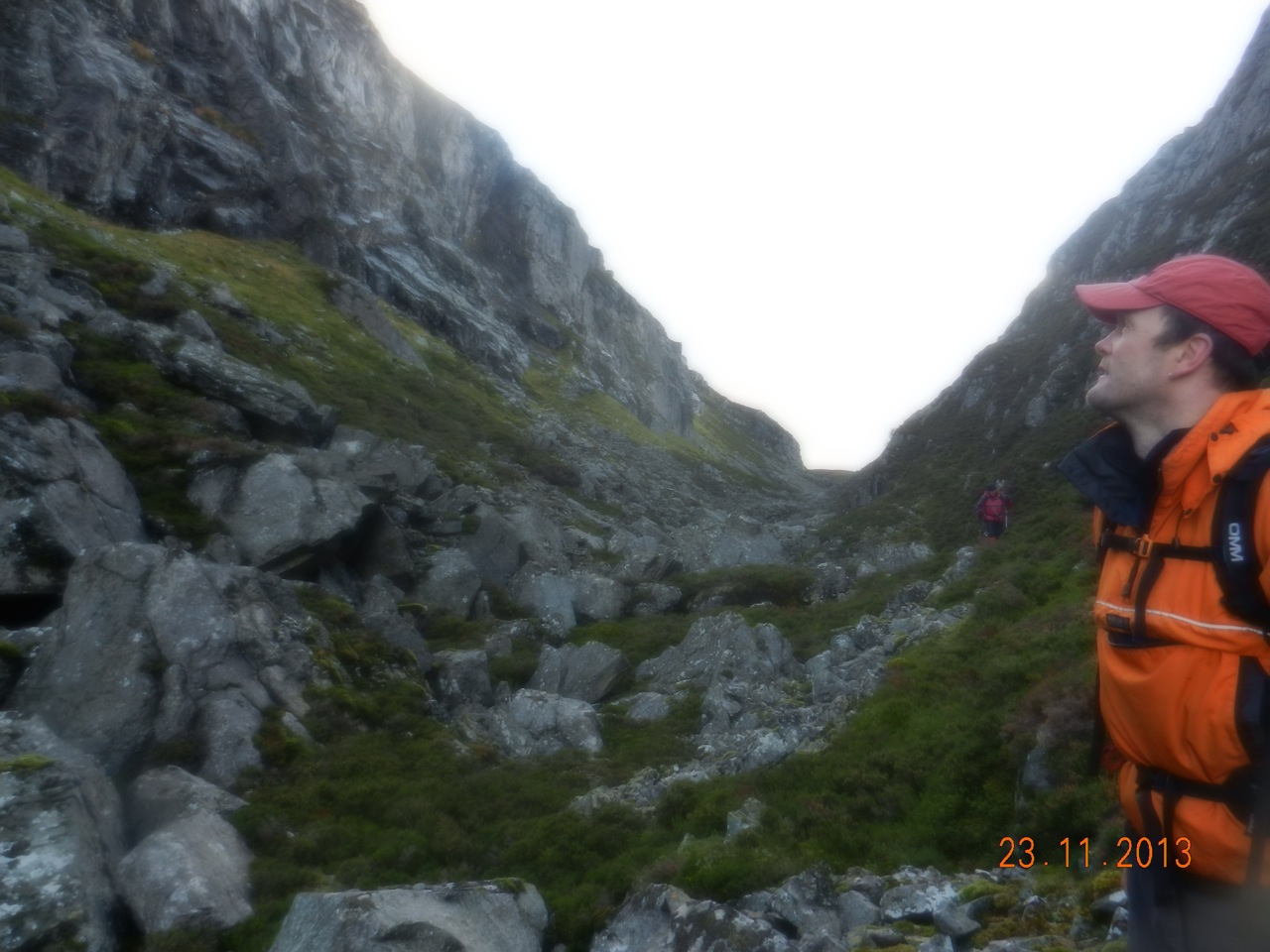 then headed off the north side of the mountain to traverse the Dirc Mhor gorge. Puts the Chalamain Gap totally in the shade !!