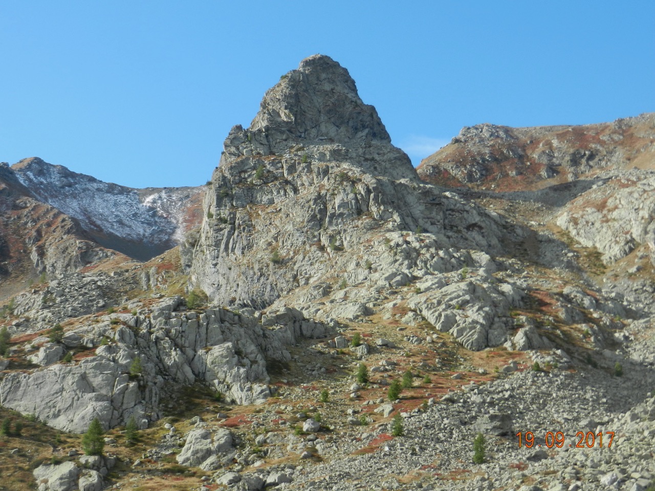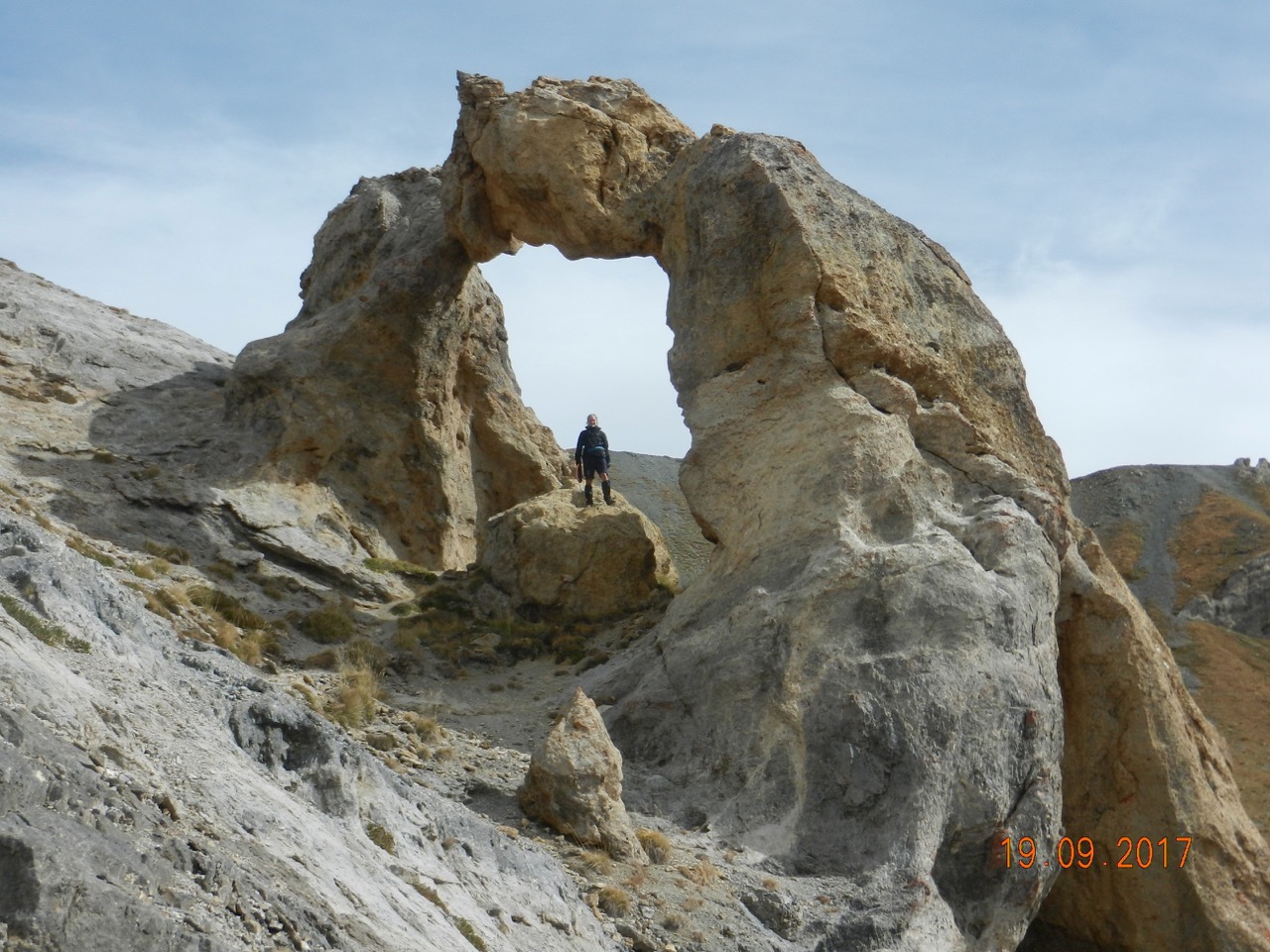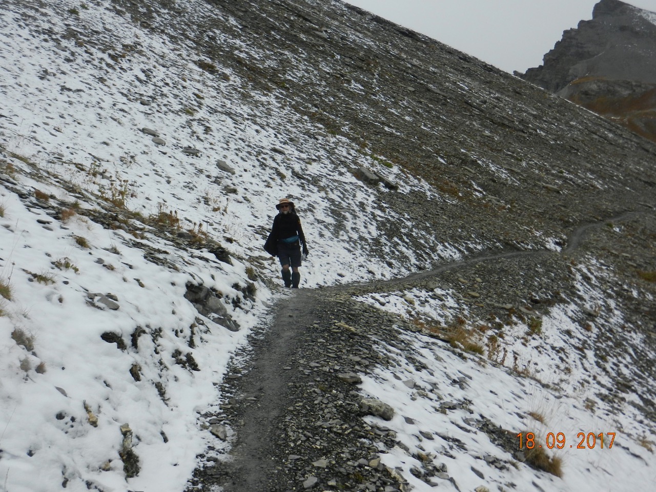 We were seeing the occasional snowflake. However Day 3 dawned clear for our progress over Col de Tortisse passing an imposing rock pinnacle and the remarkable rock arch.