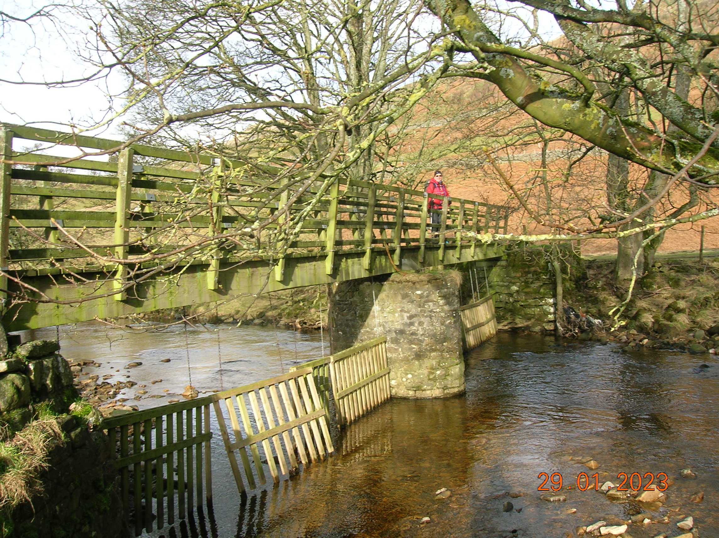 A pleasant footbridge crossed the river in Arkengarthdale, and on the other side we climbed once again, steeply through old mine tips, up to 400 metres to gain Fremington Edge. This is the top of the northeast side of Arkengarthdale. There are excellent views....... although the weather closed in for a period.