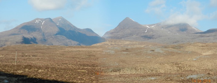 From there it was only 5 km back to the car, “enlivened” by the fact that once down from the mountain, the route continues to descend to a point 150 m below the road, adding a last kick to the final stage. Altogether, the Cul Mor – Cul Beag circuit is 19km and 1450 metres ascent….. which may seem big but not overly excessive. However as the SMC text mentions coyly, “the terrain is rough, and the time required may be more than the distance suggests”. A real taste of the wild, too, as there are no paths beyond the first summit, suggesting that most people do these two Corbetts on separate short days. .