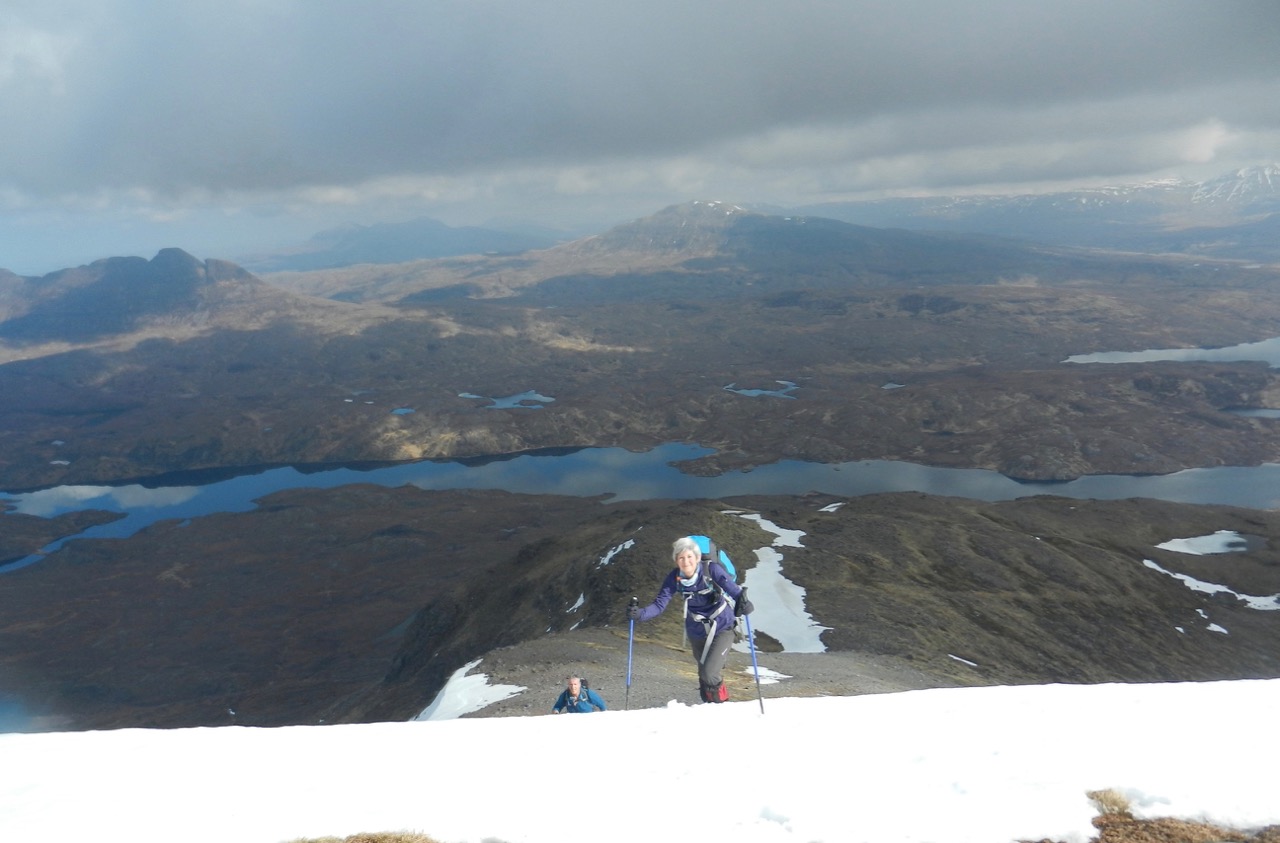 On Sunday a prompt start got us down from Ullapool to Kinlochewe, and in bright clear weather we marched up another mountain fortress, the celebrated Slioch.