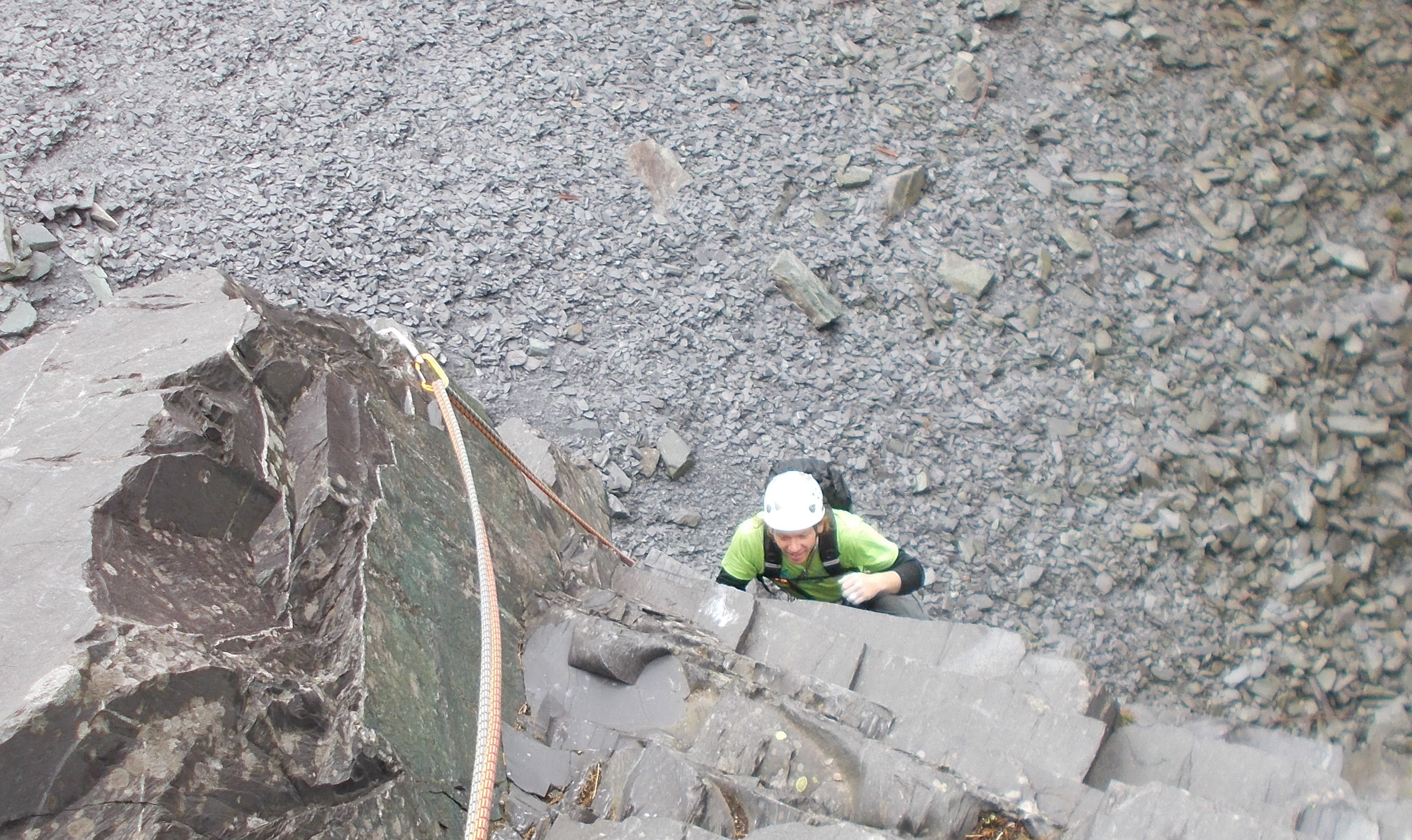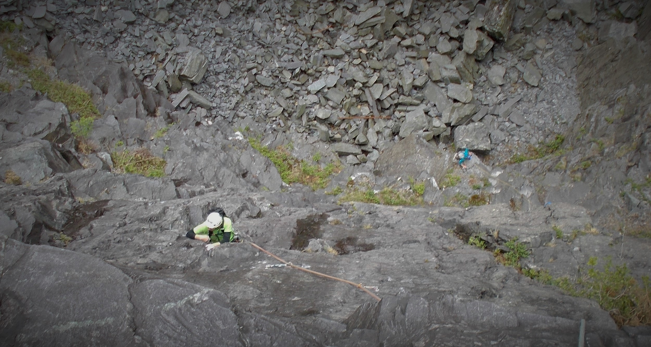 I didn't fluff the start and soon hit some dry rock and started to remember how to move on slate. The first half of the pitch is fairly straightforward but from a tricky step left the difficulty steps up and doesn't really relent until the belay, a cracking slabby pitch.