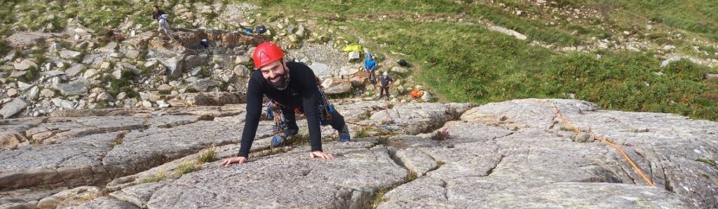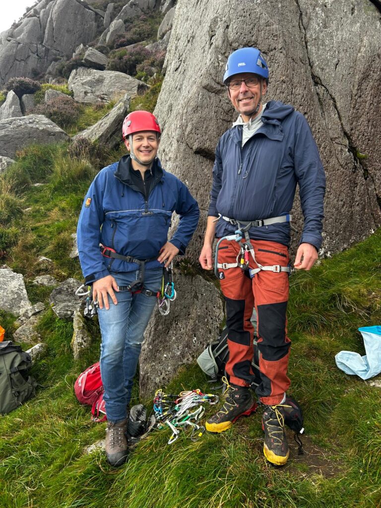 Derek and Ewart had also aimed for Sub Cneifion Rib and walked in with Emma and Alex. A team ahead had slowed everyone at the start of the climb but eventually Derek and Ewart headed up the crag, moving quite quickly and intent on avoiding further delays at their next objective, Cneifion Arete. Ewart had long wanted to do both routes and today he achieved a double success.