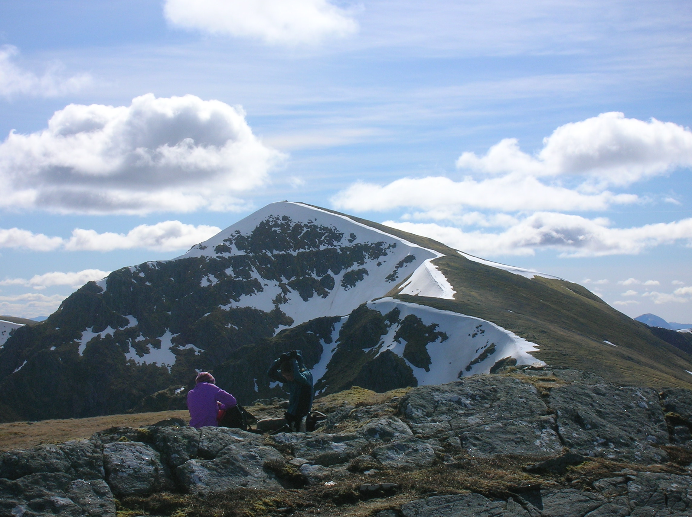 At the summit, there appear the dramatic northern corries of these mountains.
