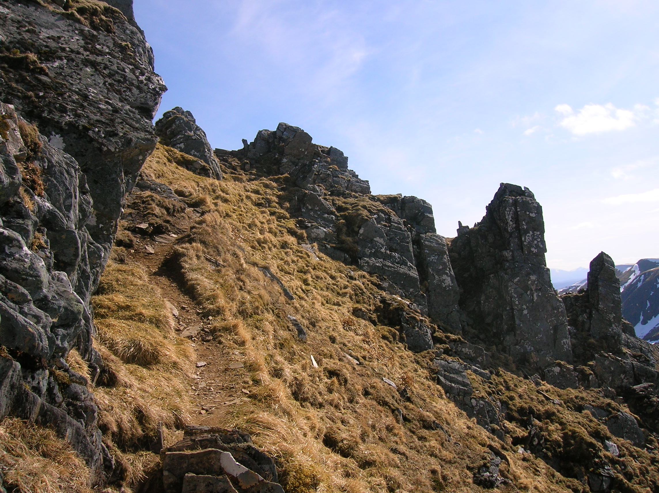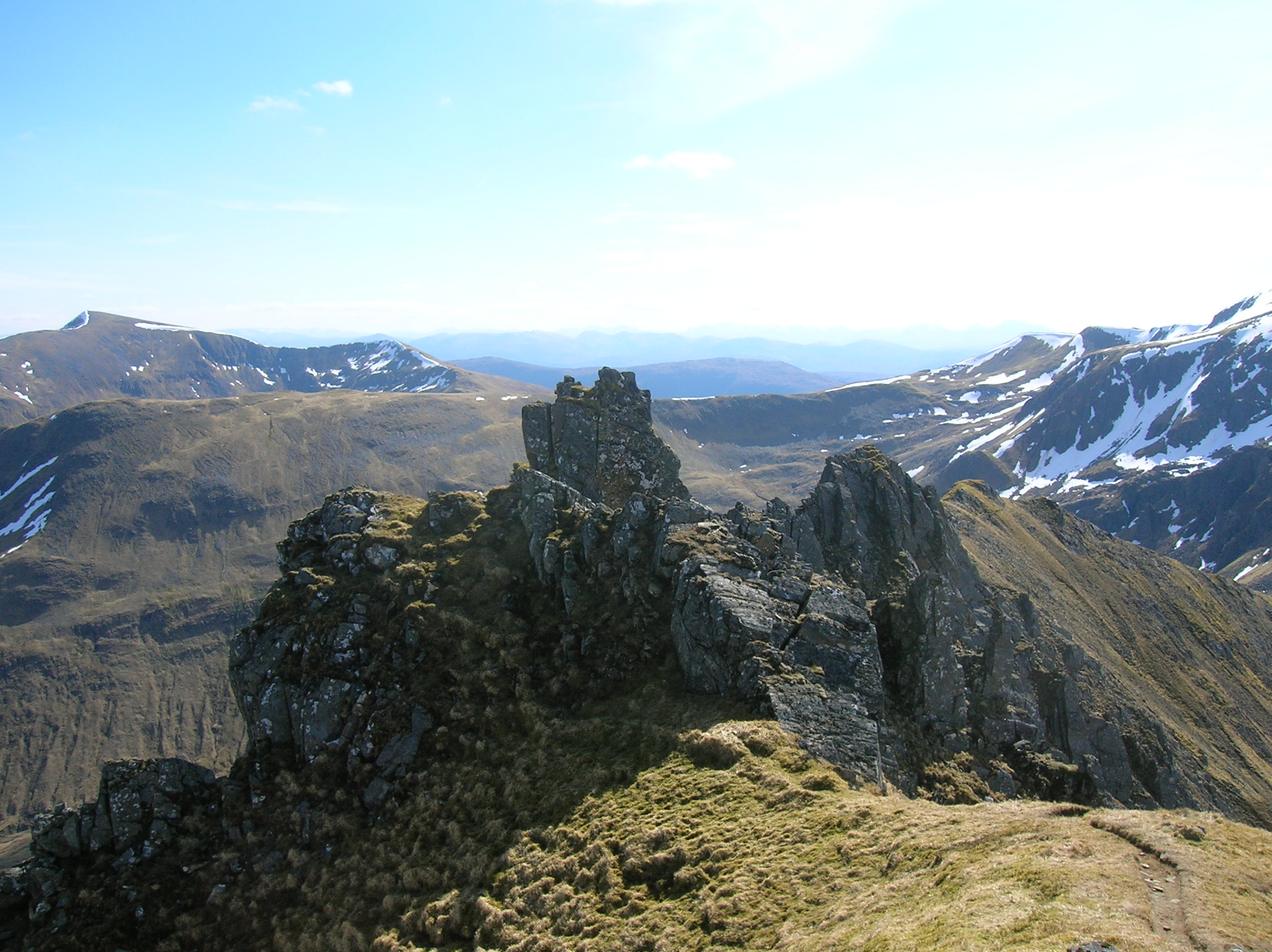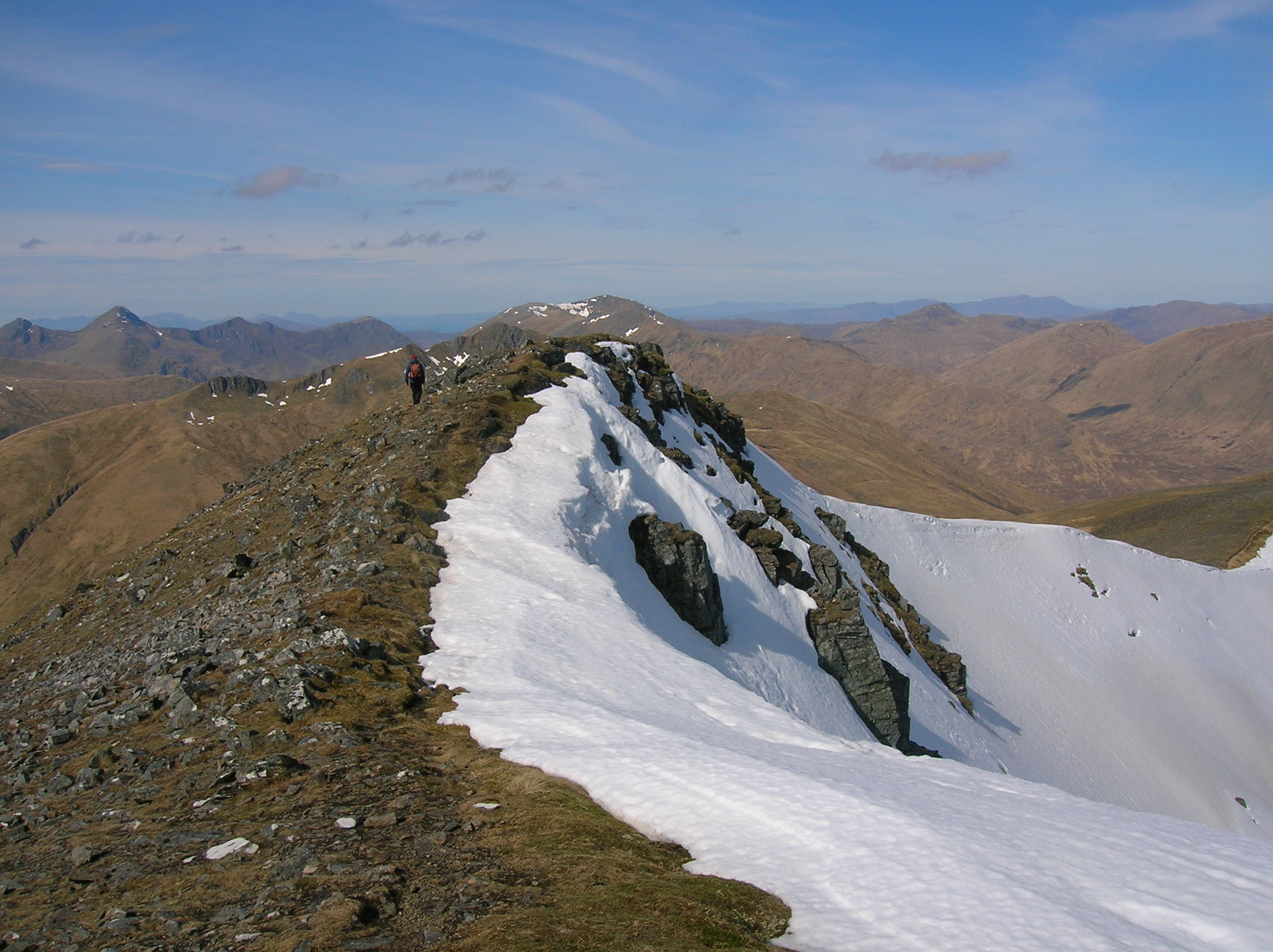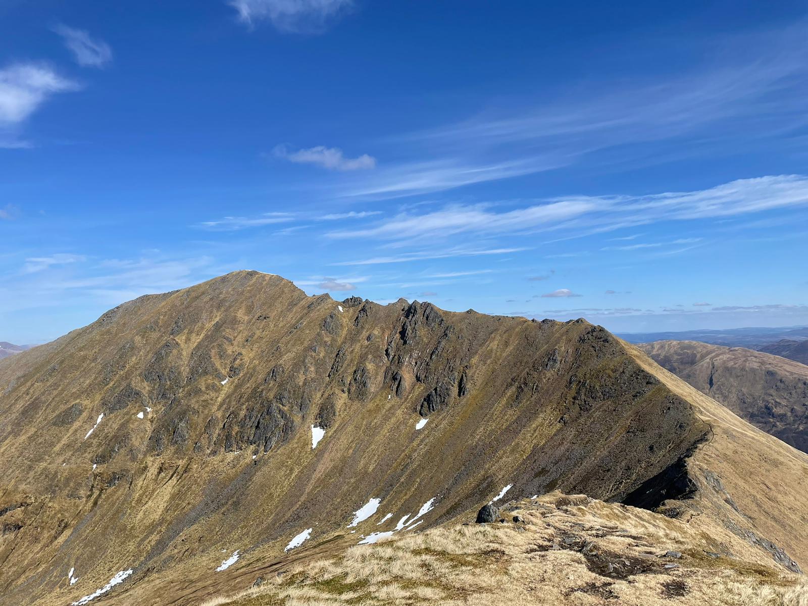 Glen Shiel (holding the road from Inverness to Skye) has perhaps the best collection of narrow ridge walks of any single glen, taken as a whole.