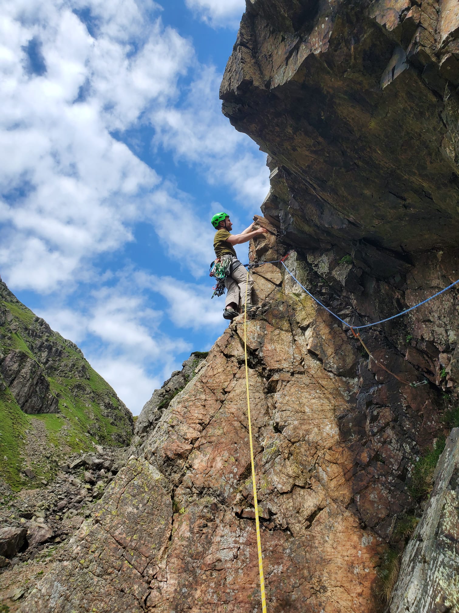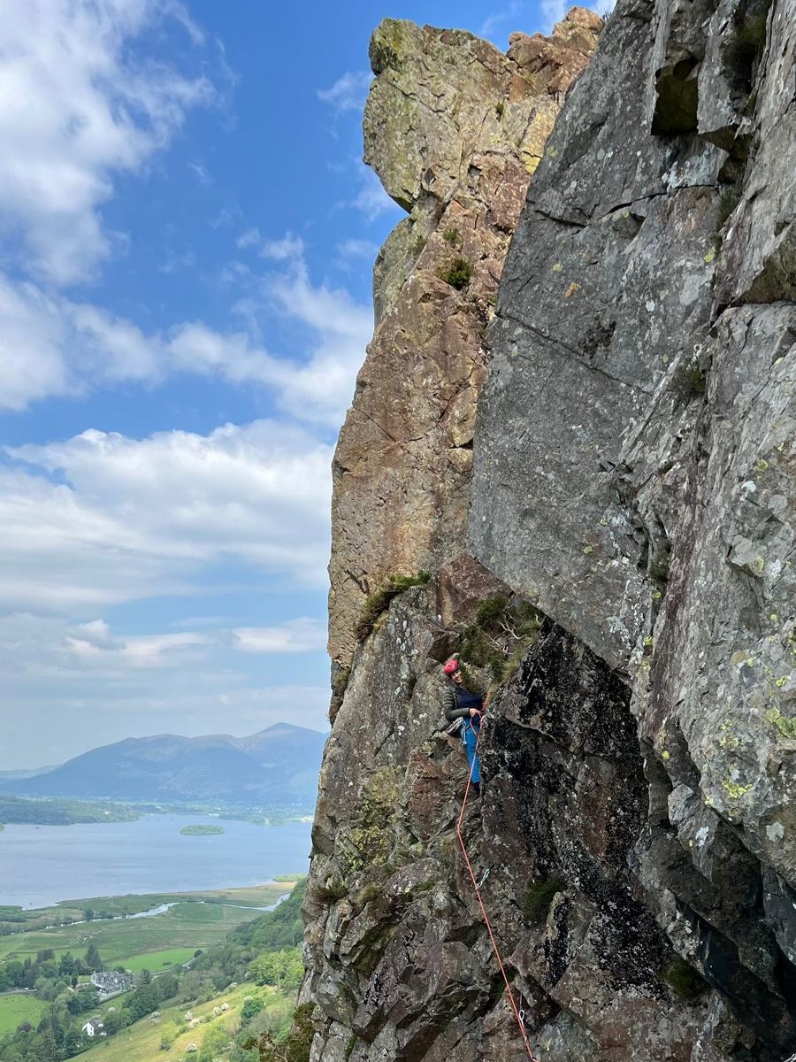Saturday morning was glorious and the forecast was to remain so. Emma and Paul went on a mission to Black Crag in Borrowdale to climb the classic Troutdale Pinnacle (S). The nearest parking bay had a couple of spaces and there was nobody ahead of them at the crag. Amazing! A fantastic climb, unrushed with no queue behind and very much enjoyed by both.