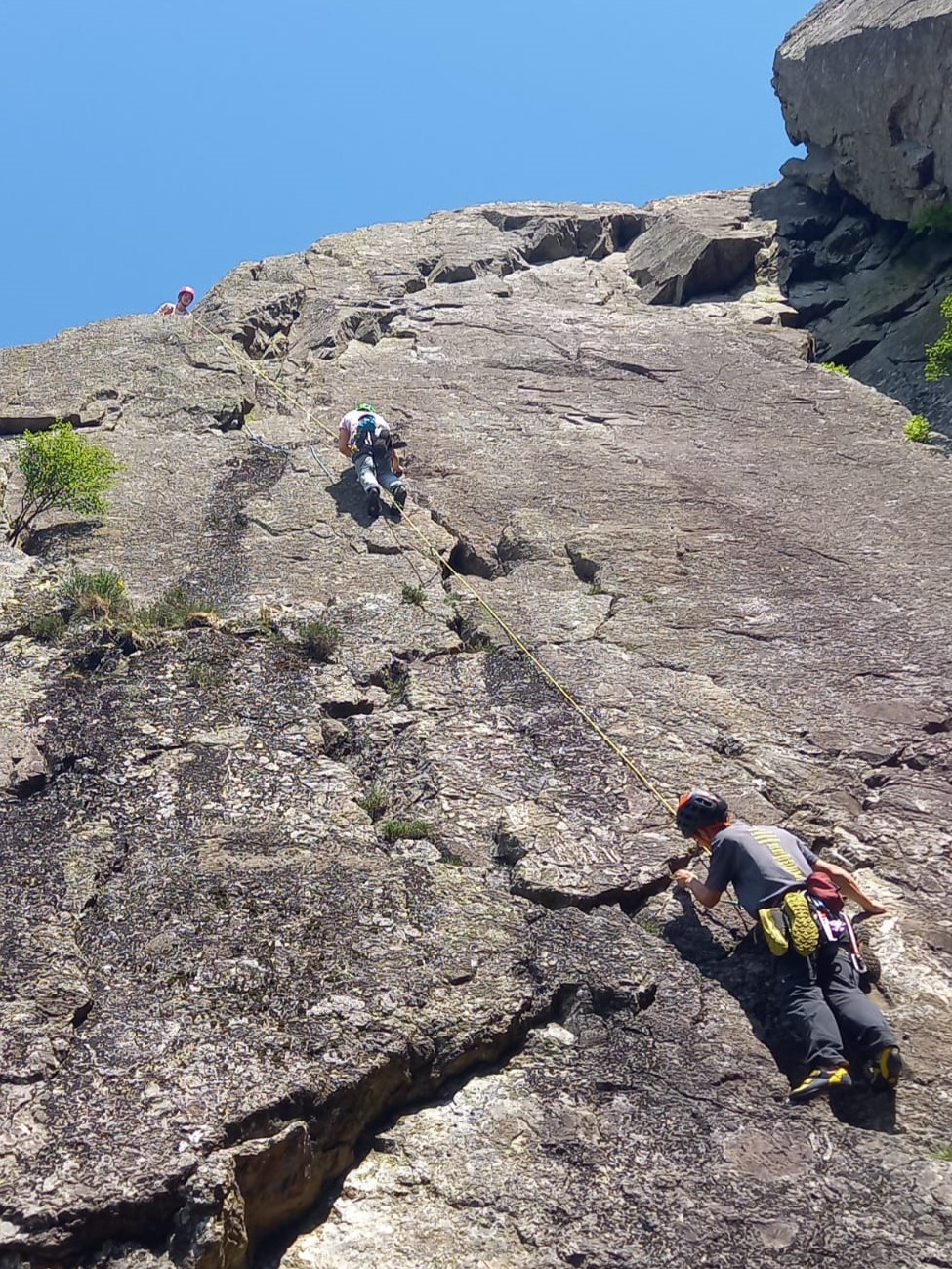 We had anticipated that Gouther Crag would be a quiet, off the beaten track, backwater sort of venue. When we arrived, however, there were at least half a dozen other groups of climbers. None the less, we were able to fit in with the crowd and accomplished some of the better routes on the crag. Oli, Jenny and Wes first climbed The Fang (VS 4b) followed without delay by Kennel Wall (S 4a) being 3 star and top 50 climbs. Paul and Dave opted for the Slab Start to Truss Buttress (S 3c) which was a great route to test your confidence in friction.