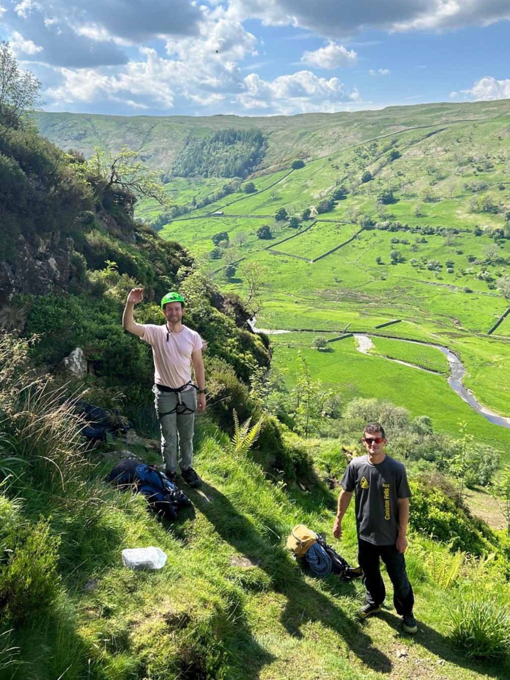 Everyone arrived back to the hut in the early evening and other than a few sneaking away, very briefly to the pub, the majority were engrossed in preparing the veggie curry feast for the night. This was another outstanding and sociable meal for all. So much food that we had enough for at least one extra random Yorkshireman visitor and more. The weather forecast for Sunday was once again perfect so no late night tonight. Emma, Faith and Martin would have to leave for home in the morning. Everyone else would go climbing at Gouther Crag near Shap.