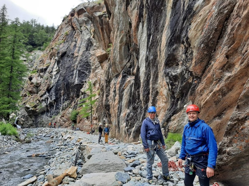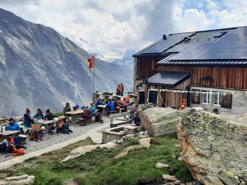 Thursday was a rest day! Just five minutes’ walk from the hut was the start of the Brittania Via Ferrata (Klettersteigskala) – another opportunity not to be missed! The route was entertaining and not too difficult (graded K2 to K4). The via Ferrata took about 3 hrs to complete including the route down and back to the hut. The rest of the day was spent chilling, taking in the surroundings and recharging our ‘batteries’ ready for the big day tomorrow.