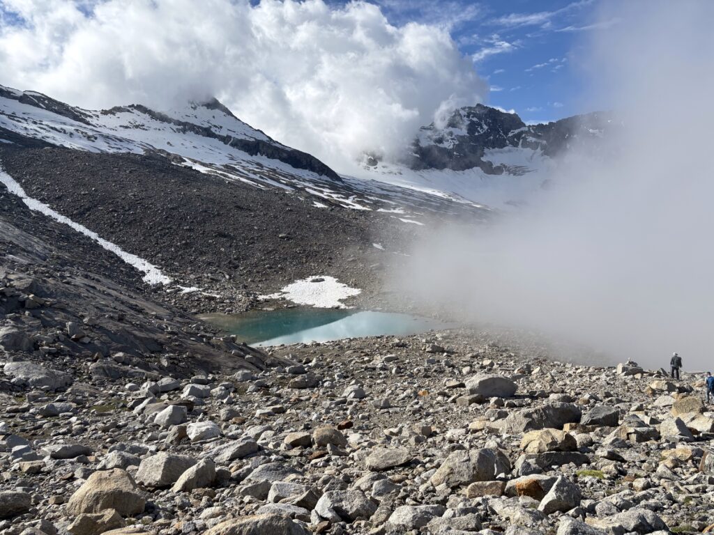 In Switzerland, you pay a tourist tax if staying in a hotel/AirbnB (not a hut), however you receive one free daily pass to use the lift system for each day you stay. So, Saturday morning we took advantage of this and went back up the mountain to Langfluh (2870m) for a coffee and a stroll over to the Feegletscher glacier. It is quite incredible how the quickly the glaciers are retreating in the Alps, ☹ it is everywhere to see!