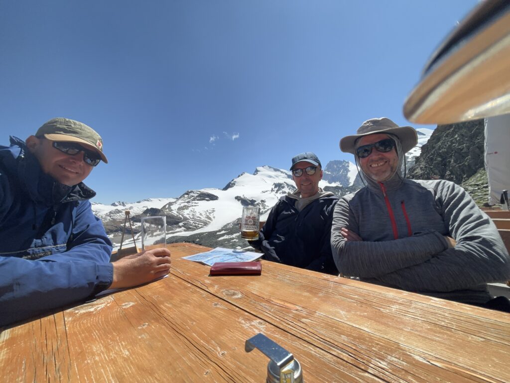 Once at the hütte we summoned up enough strength for a beer and wonders of wonders, a shower, for just 5CHF (£5) each! We had an evening meal at the Hutte but mild altitude sickness still plagued Martin and Ewart who struggled to eat anything.