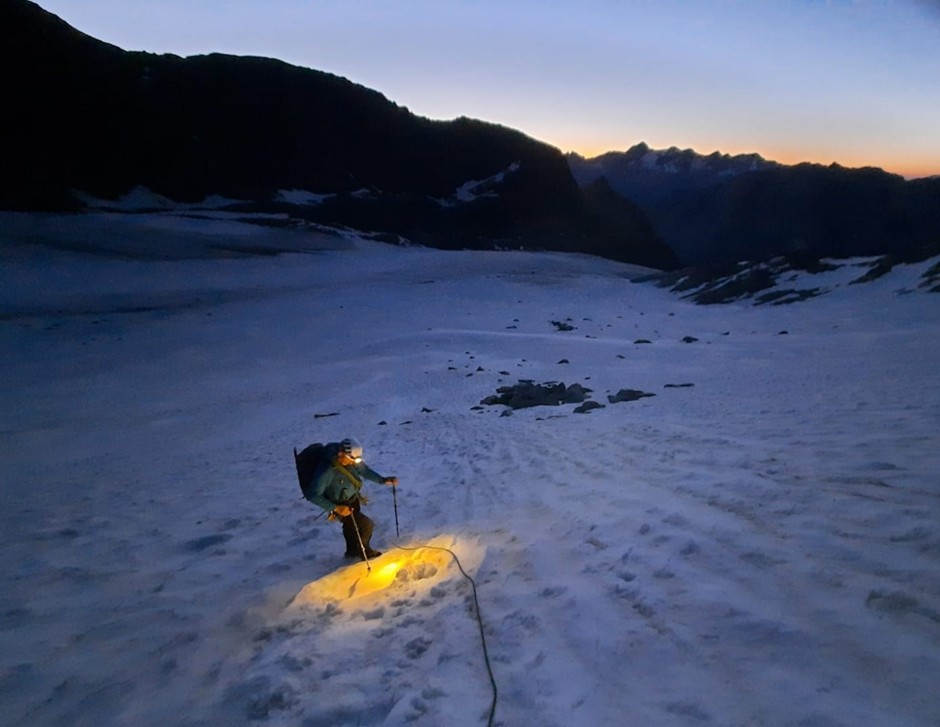 Weissmies summit day! With a concerto of alarms at 03:45am, breakfast at 4, we exited the Hutte at 04:45am.