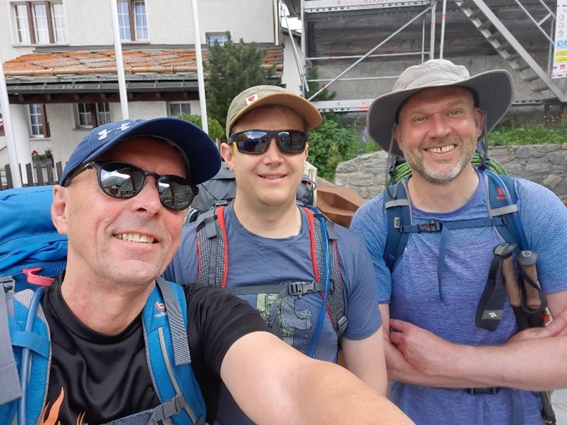 L-R Derek, Ewart, Martin, Saas Almagell square (Photo: Derek)