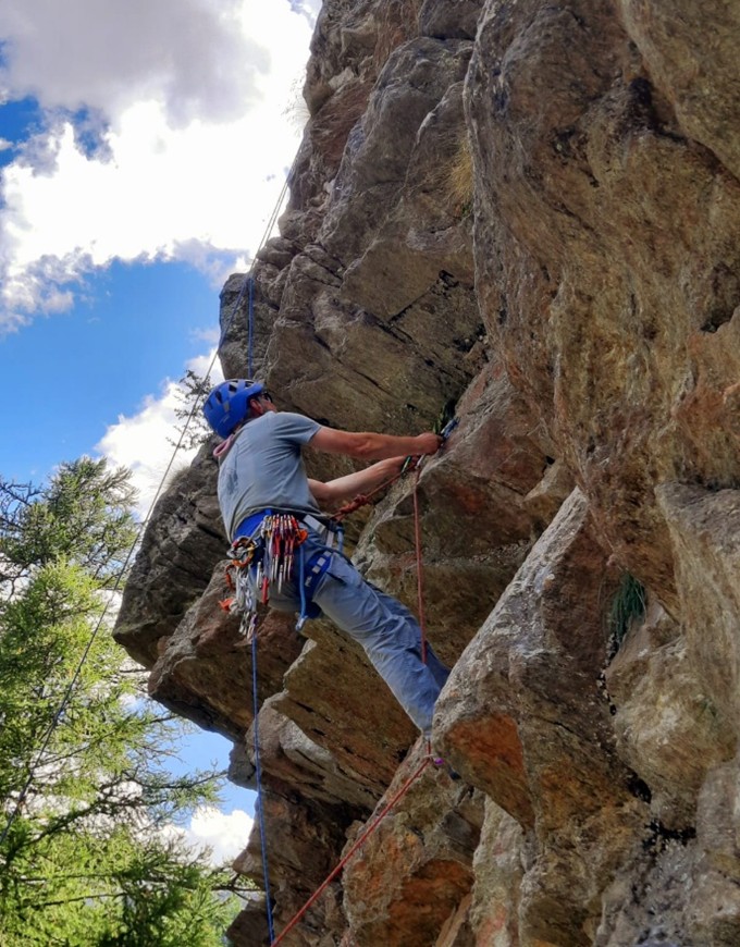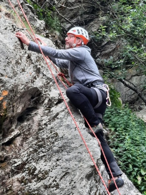Ewart dropped his coils and lead the climb with Derek belaying. Ewart leading (Photo Martin)