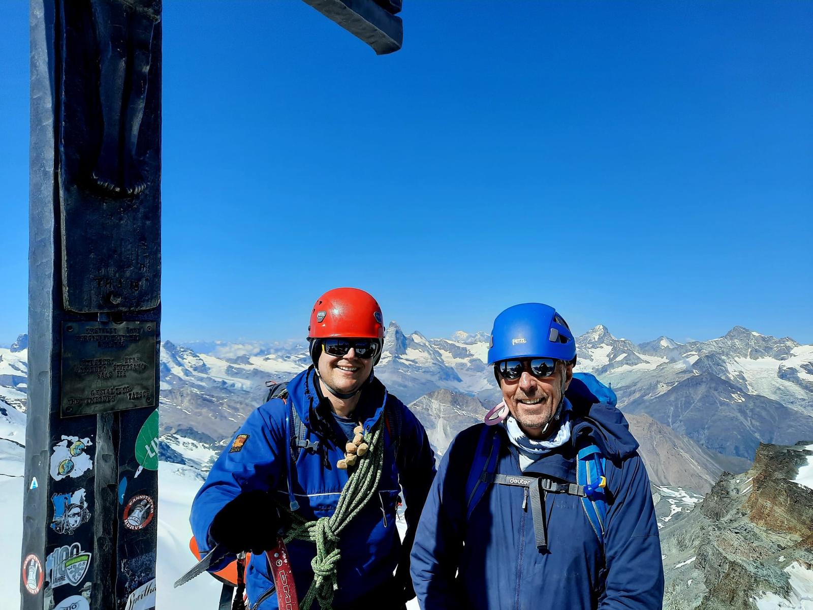 Ewart & Derek, Alallin Sumit, note the Matterhorn to Ewart's left ear! (Photo Martin)