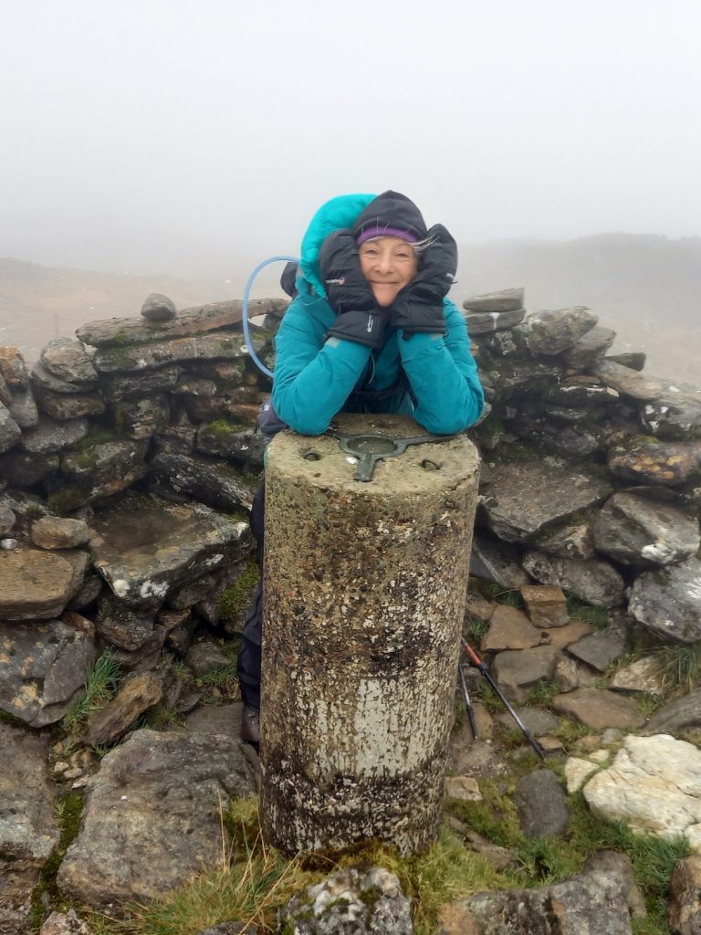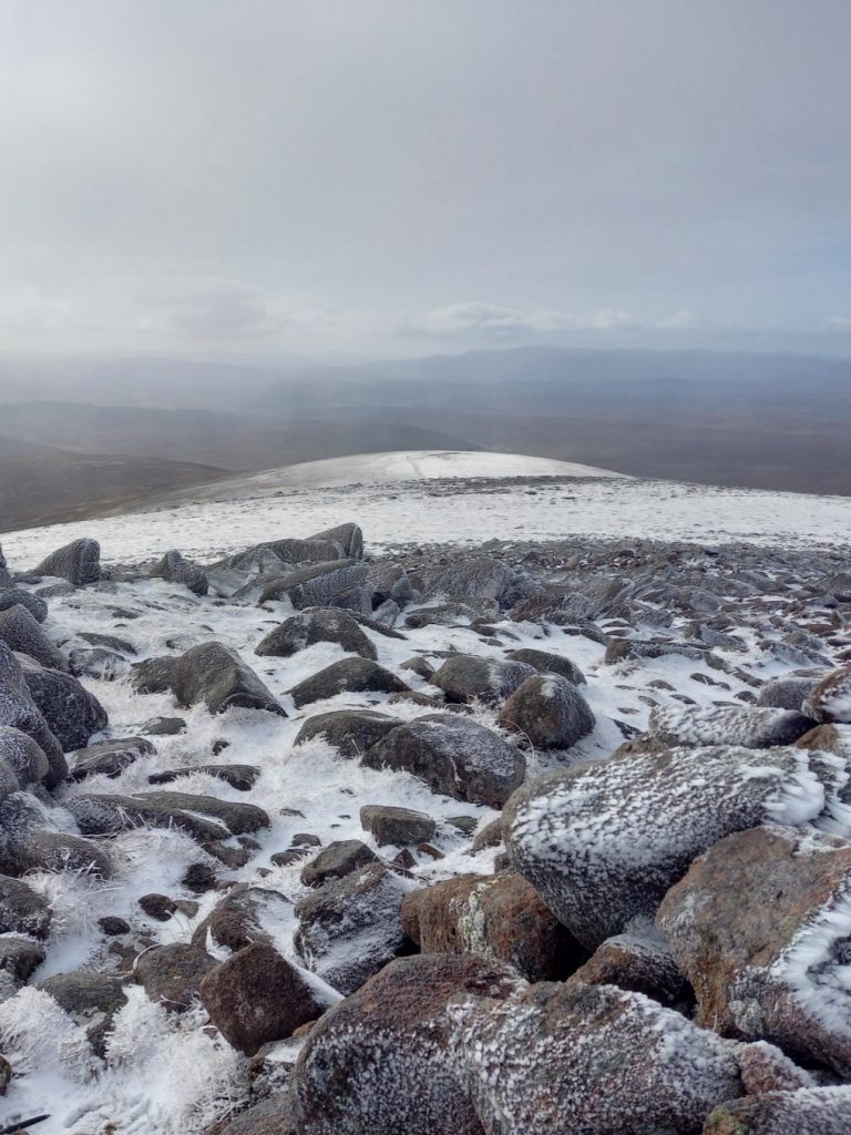 This was a shorter day on the hill with approximately eight miles to cover from the very convenient car park at an altitude above 400m. The wind was wild but eased after lunchtime. Our route took us directly into wind on the ascent but were sheltered by the ridge until arriving on top of Beinn Ghlas. Cloud was on both summits and most of the ridge in between but again the navigation was not difficult. Our descent was to the west side of the ridge and mostly sheltered from the wind.