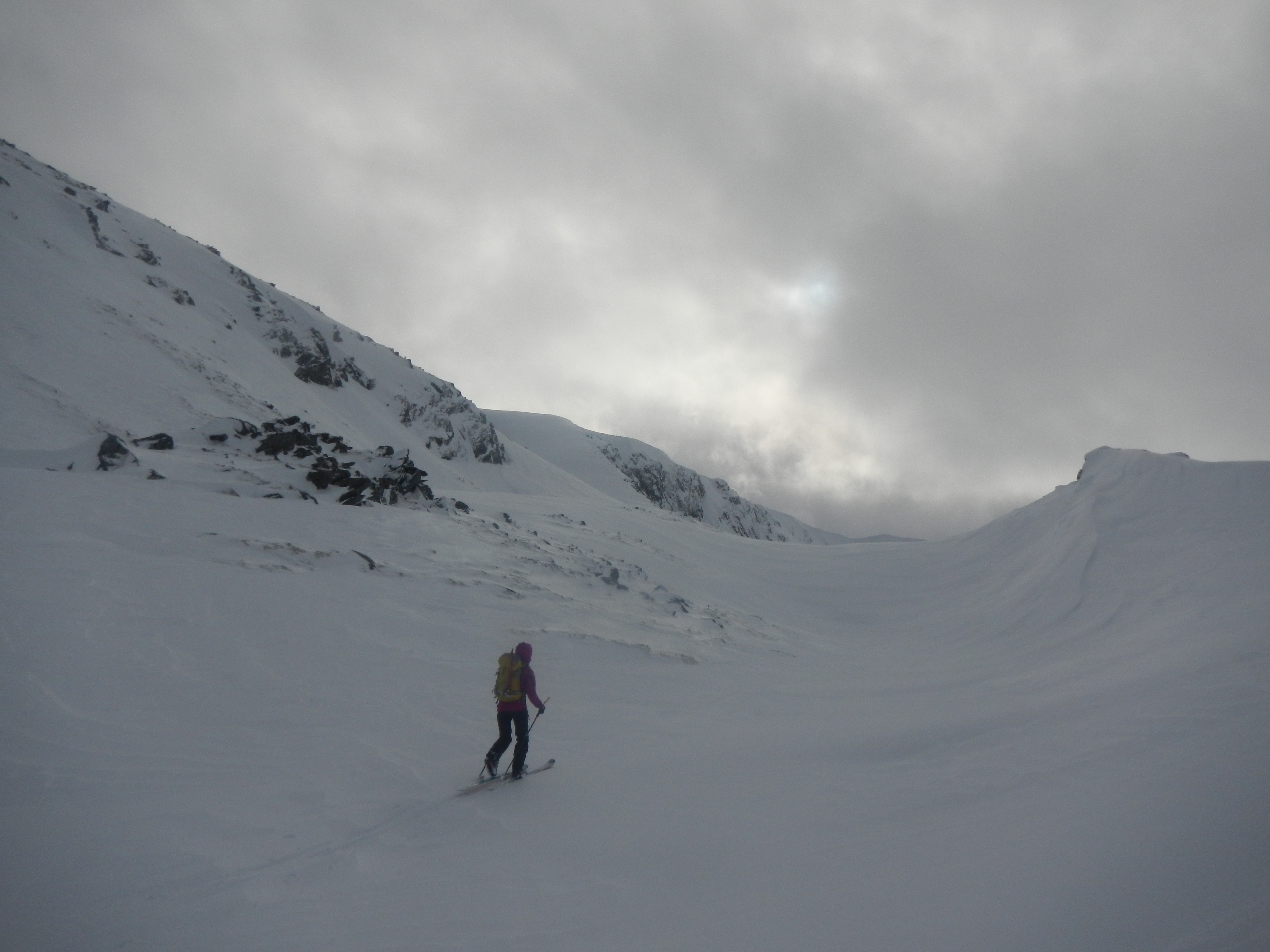 We left York afterworks on Friday, and drove till we got too exhausted (meaning slightly after Loch Lomond). On Saturday, we decided to go for skitouring in Glen Shiel on the way: relatively high pass meant no ski carrying, and the weather was fine ! Druim Shionnach from Cluanie Inn: a nice view for our very first Munro!