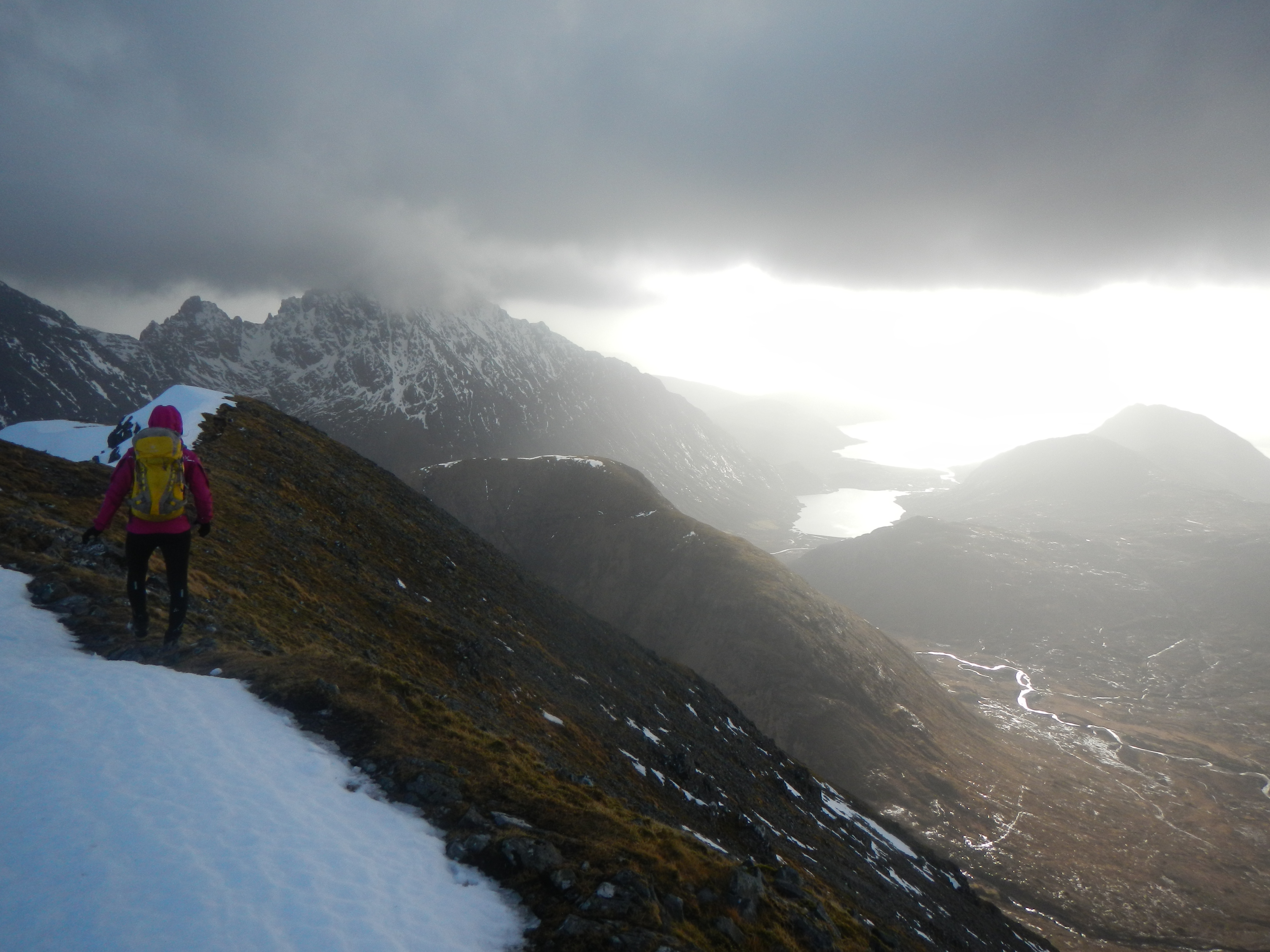 Tuesday weather improved significantly, and we went for the Marsco traverse for amazing views on snowy Cuillins.