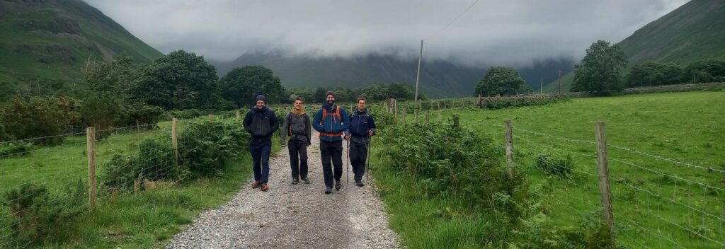 On Sunday morning the weather was cool, cloudy and windy. Quite a contrast to the previous day. Five of us went for a shortish walk south along Wastwater and then east up onto the Illgill Head ridge to make our way, with the wind behind us, north back to Brackenclose. The path along Wastwater had several boulder fields to cross but the path along the ridge was very easy to follow, mostly grassy terrain. The rain showers were continuous for most of the time we were on the higher ground but provided a realistic testbed for jackets, overtrousers and other kit that has not been exposed to real weather so far this year.