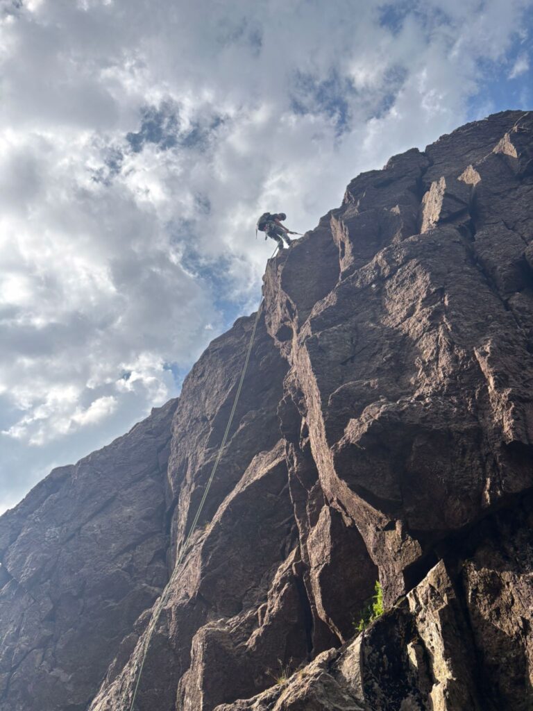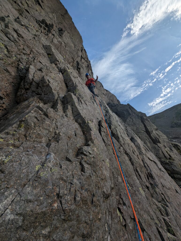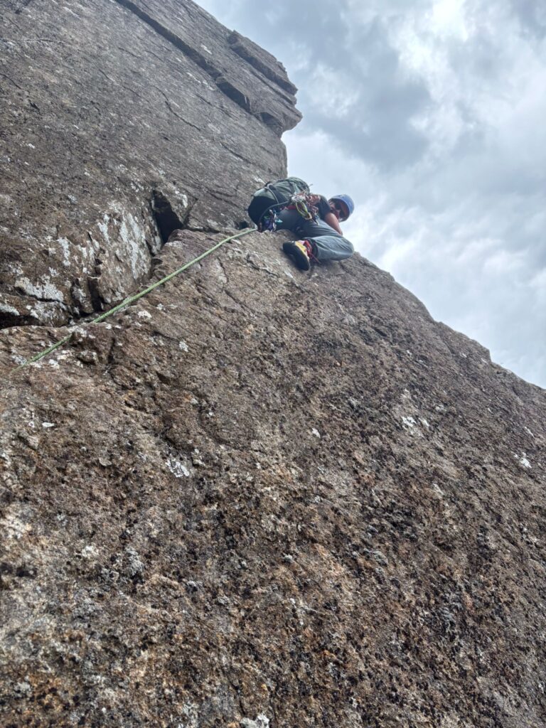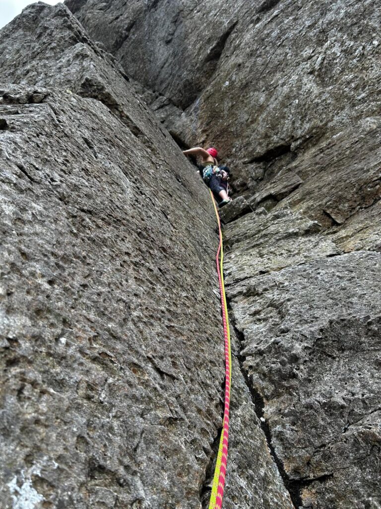 On the opposite side of Mickledore on Scafell Crag Jenny and Emma set their sights on Moss Ghyll Grooves. The VS 4c *** route proved to be a testing and rewarding climb. Testing the laws of physics, various items of equipment were dropped but thankfully all recovered by the end of the day. Testing the laws of navigation was the final element of the climb but Emma and Jenny made it safely back to Mickledore for the descent. Thanks Oli.