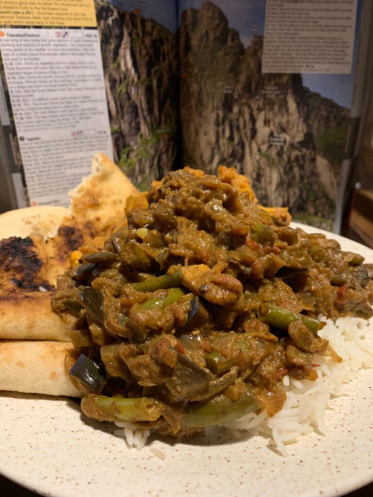 Everyone enjoyed the vegetarian curry dinner that had been provided by Oli and prepared the night before. There was, as usual, plenty of it so when Derek and Ewart eventually arrived they were treated to a gastonomic version of Pillar in honour of another grand day out. Outside the thunder, lightning and rain continued for a long time into the evening.