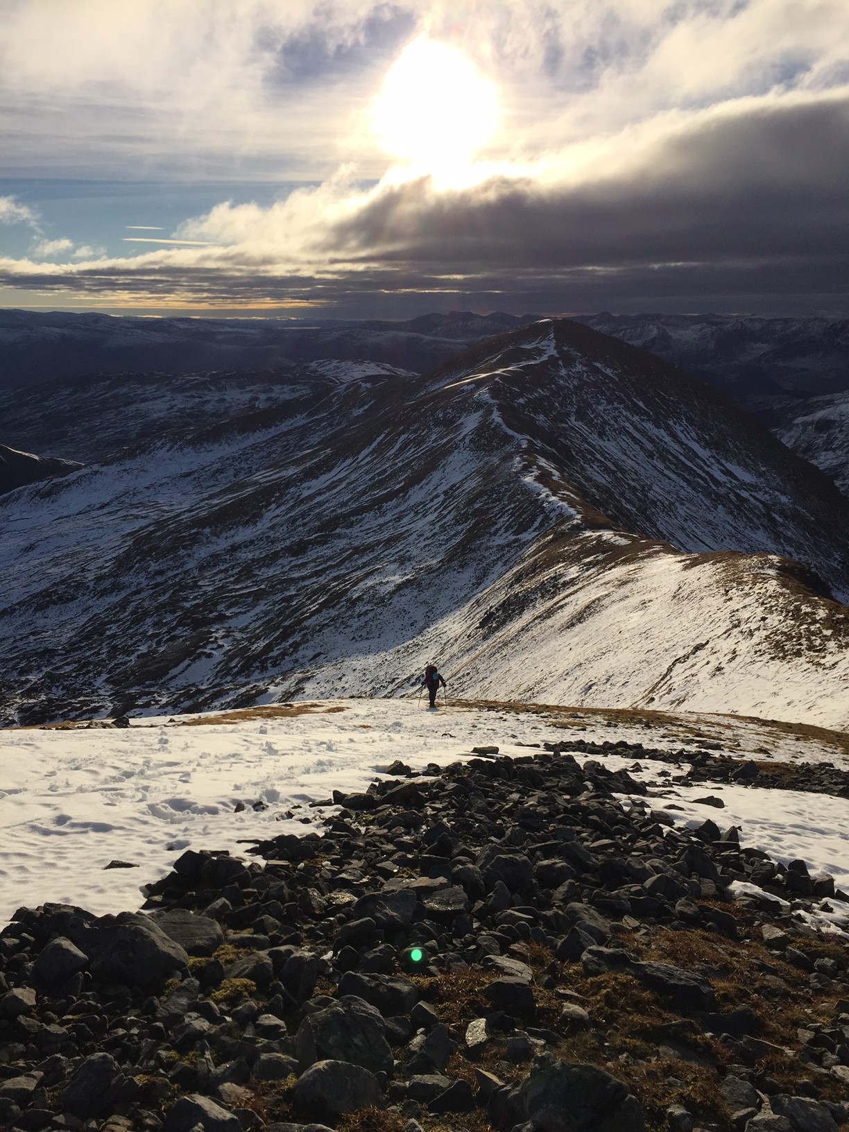 Eventually things eased up a tad, and we got to a 961-metre summit, with stunning views of all the West Highlands under the dominating bulk of the Big Ben.