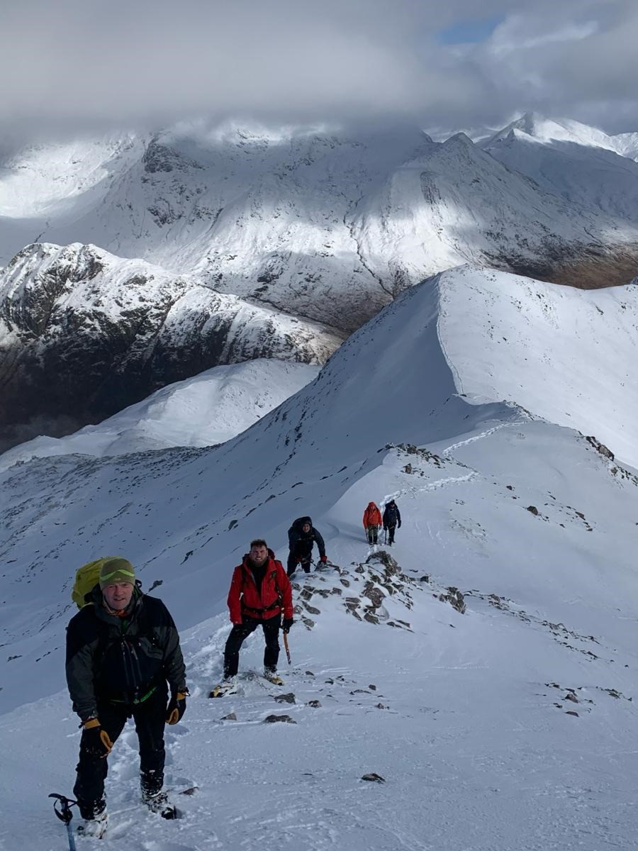 Oli B and Oli T with Gav H and Gavin M, plus Brian, Steve M, Neil, Tracey and Martin all headed to Schoolhouse Ridge and on to summit the two Munro's of Sgorr Bhan and Sgorr Dhearg. The weather and ground conditions here were much improved from Thursday and everyone had a tremendous day, comfortably achieving both Munro's and this time without having to make use of artificial light.