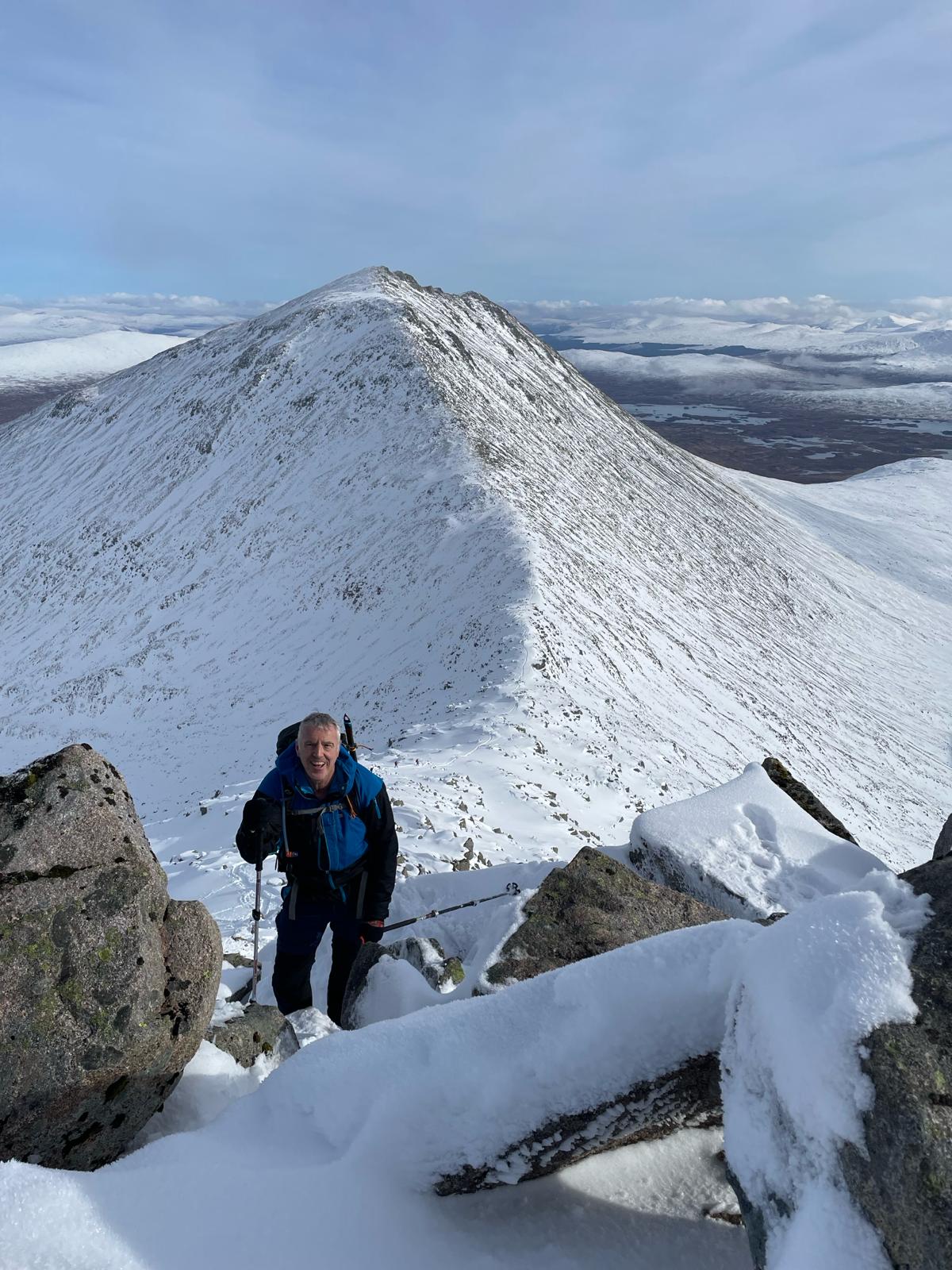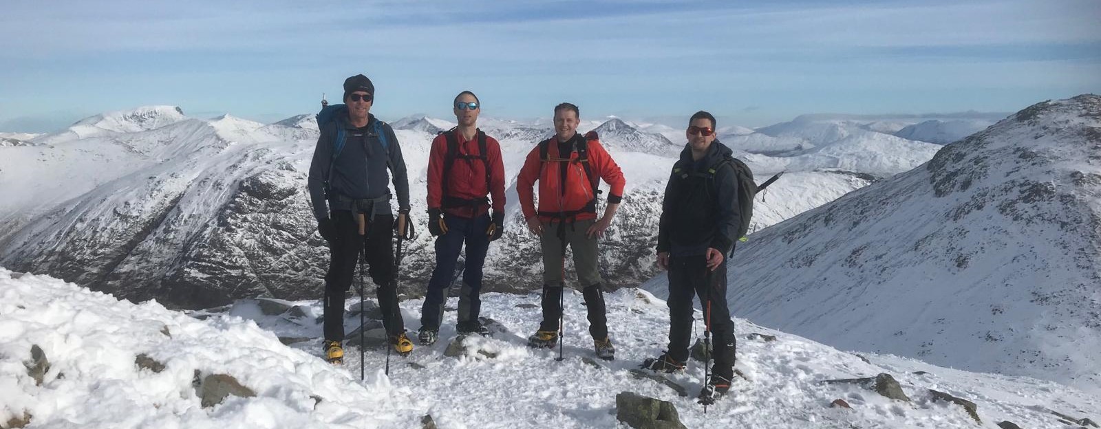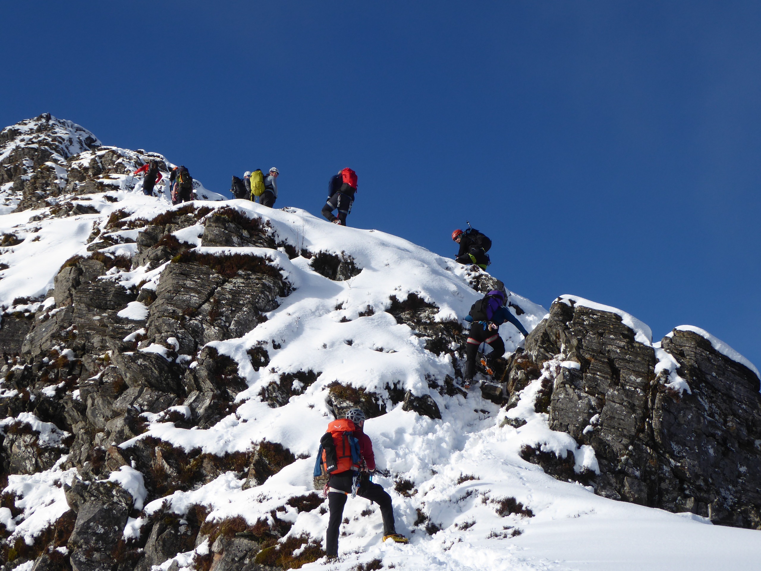 The kitchen was properly busy on Sunday morning. Everyone would be out on the hill today and most were heading home in the afternoon. Dave C, Charley, Ed, Derek and Ewart headed to the top of Glencoe to tackle the Buachaille Etive Beag. Fantastic scenery and clear skies ensured that it was a worthwhile venture. It was a tremendous boost after the difficult day out on Friday.