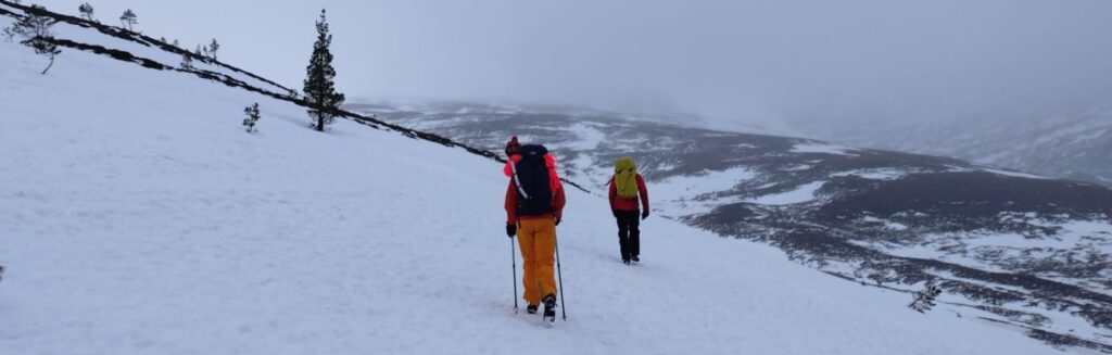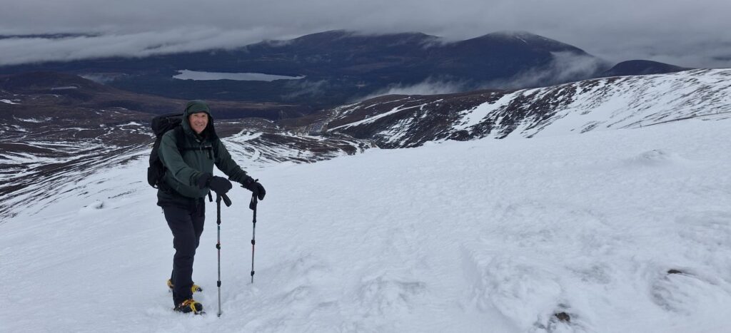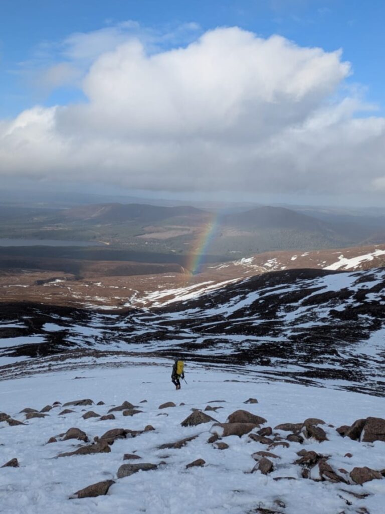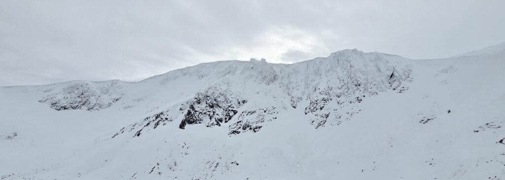 Derek W and Martin P were initially planning to scramble on Fiacaill Ridge. After achieving their objective and as the conditions were better than expected they decided to extend their day with a trek across to Ben Macdui. Despite the late, ambitious change to their plan they made it back in good time without the need for a head-torch.